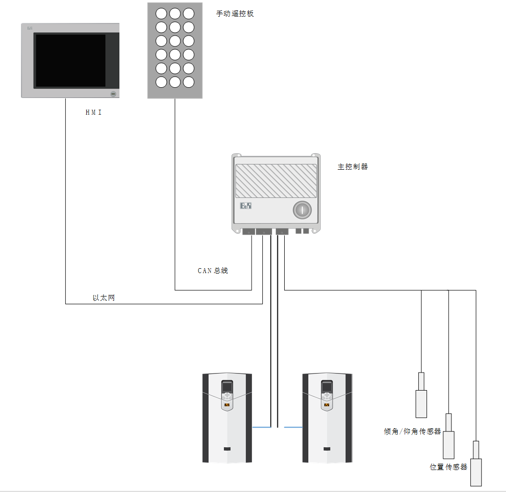 控制系統(tǒng)采用分布式CAN總線架構(gòu),包括:接觸器控制、變頻器控制、傳感中心監(jiān)測、數(shù)據(jù)遠程通訊、遙控接收等多條CAN總線,這些都需要應(yīng)用豐富的CAN接口,X90標配了4個CAN接口,以及標準以太網(wǎng)和USB口。各接口可根據(jù)需要進行便捷的擴展。