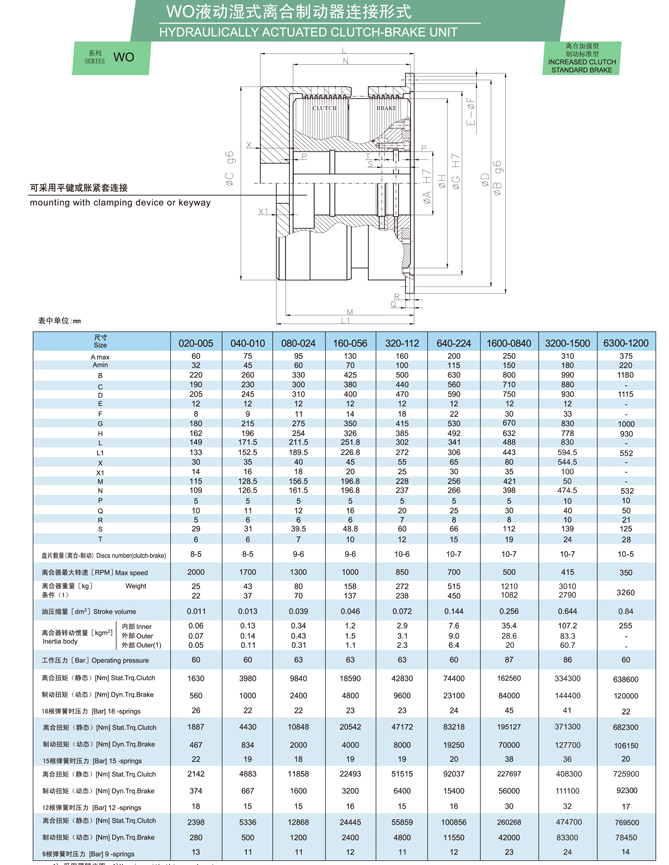 WO系列是一種組合式離合器/制動裝置,采用燒結(jié)青銅摩擦材料油驅(qū)動。它通常用于接合和制動任何工業(yè)機器(偏心壓力機、關(guān)節(jié)壓力機、金屬沖壓、封邊機、沖床、深沖壓力機、機械剪切機、熱鍛等)。它是要求高性能和最大可靠性的機器的理想產(chǎn)品。