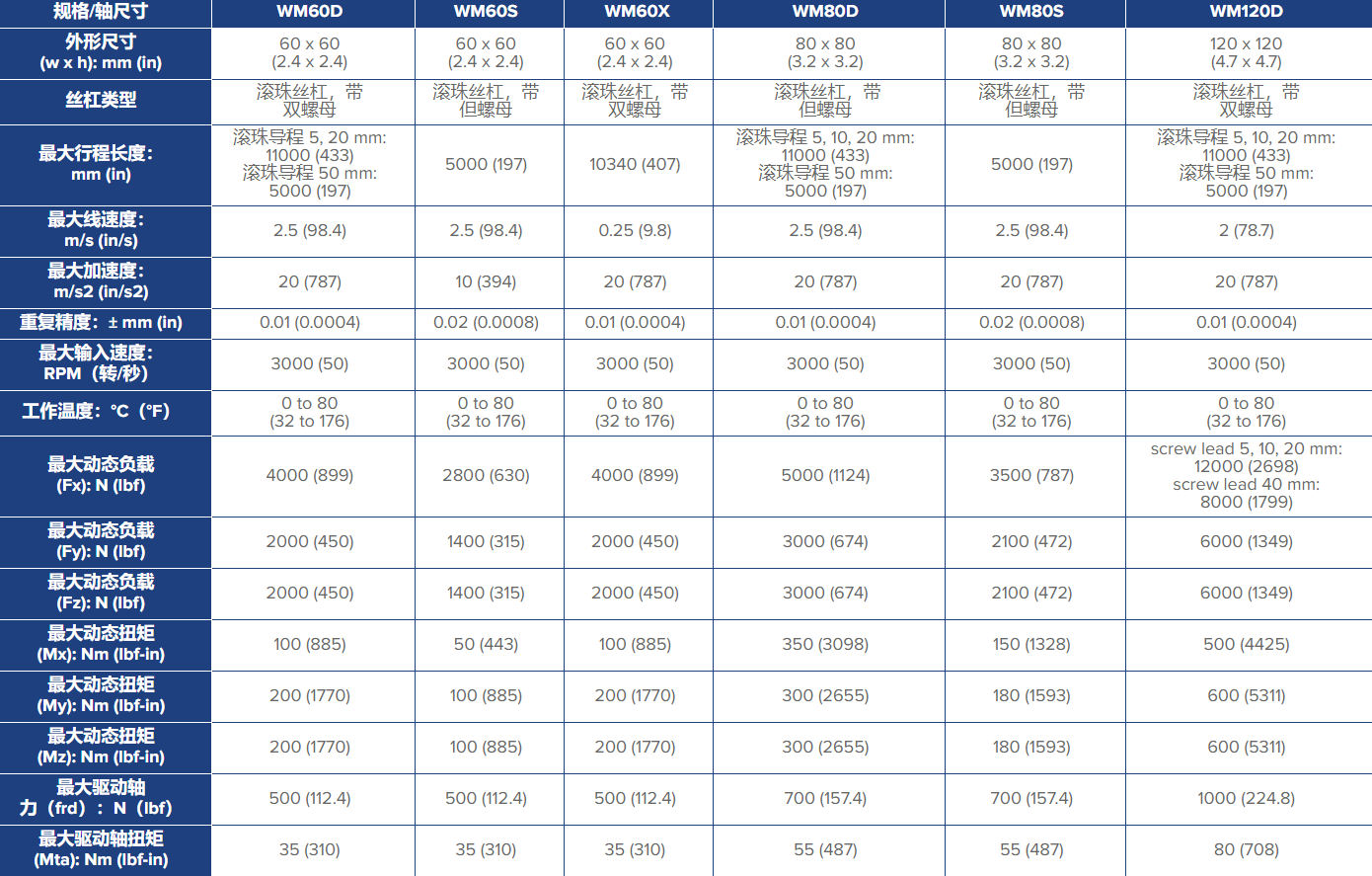 WM系列為需要?jiǎng)偠取傂院途鹊膽?yīng)用提供絲杠驅(qū)動(dòng)滾珠導(dǎo)向的運(yùn)動(dòng)。MLSM采用寬軸承結(jié)構(gòu),具有高力矩負(fù)載。WV單元類似于WM單元,但需搭配外部軸承導(dǎo)軌使用。WMZ單元是一種負(fù)載能力更高的WM軸承系統(tǒng),但采用皮帶驅(qū)動(dòng),速度更高。